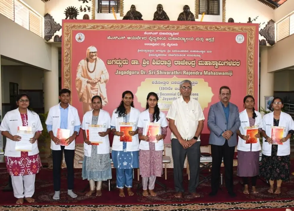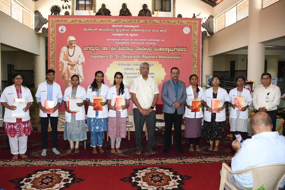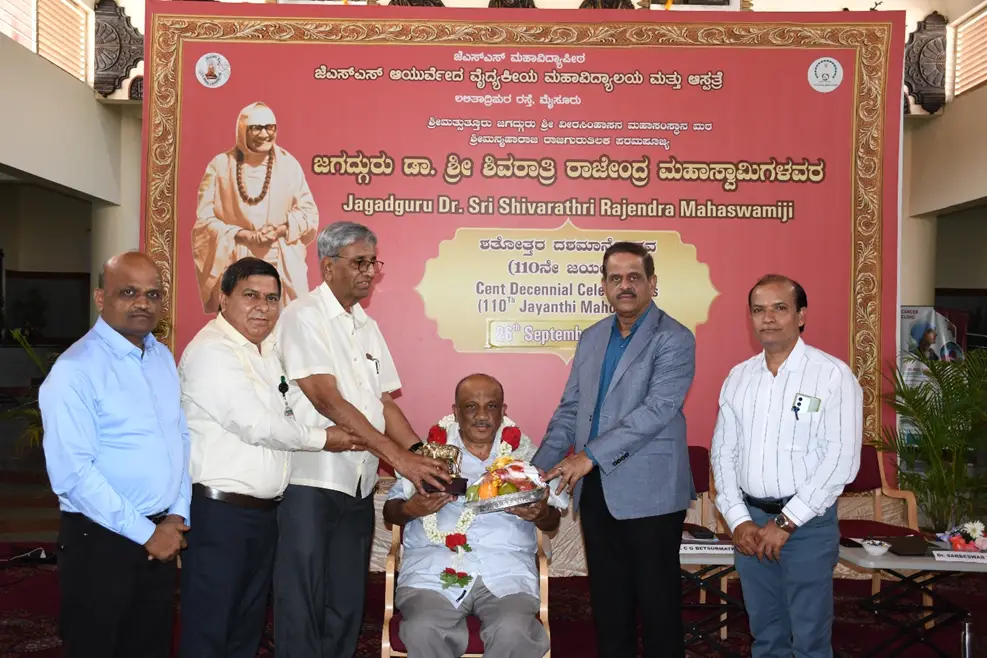 Our Institution had organized Cent Decennial Celebrations – 110th Jayanti Mahotsava of His Holiness Jagadguru Rajagurutilaka Dr. Sri Shivarathri Rajendra Mahaswamiji on 26th of September 2025 in JSS ayurveda Hospital. The Programme was graced by the esteemed guests, dignitaries, faculty members, postgraduate scholars and undergraduate students.