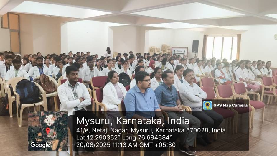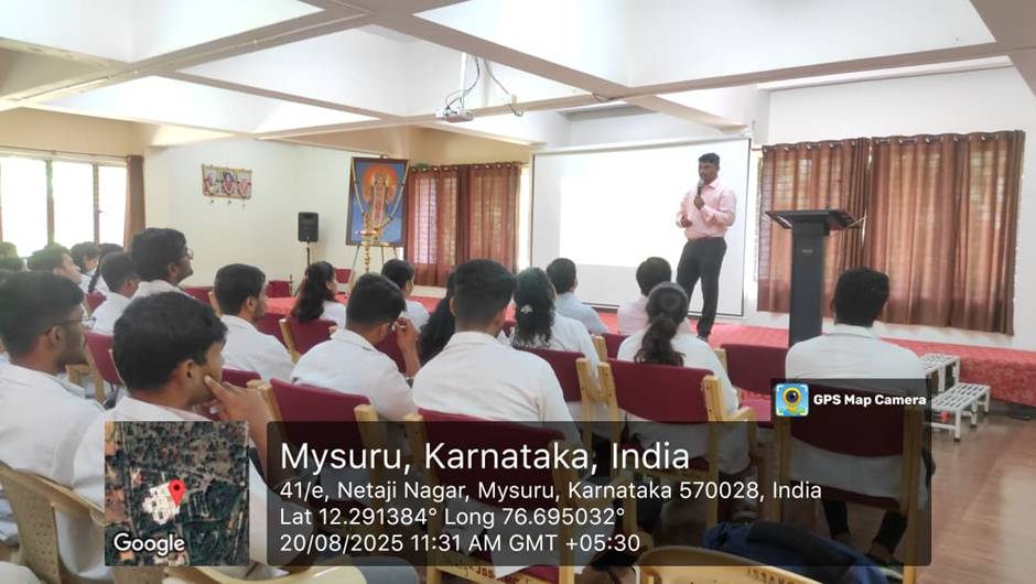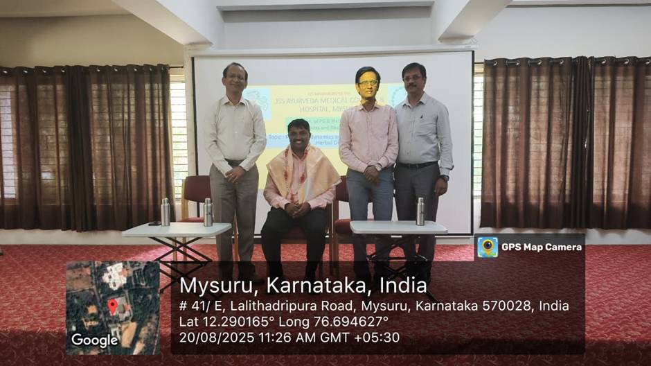 Department of Rasashastra and Bhaishajyakalpana of our Institution had organized a Guest Lecture on “PHARMACOKINETICS & PHARMACODYNAMICS OF HERBAL DRUGS” by the Guest Speaker Dr.Charan C S, Professor, Department of Pharmacology, Sharadavilas College of Pharmacy, Mysuru on 20-08-2025. Sir spoke on application of it in selection of medicines and its relevance in clinical practice.
